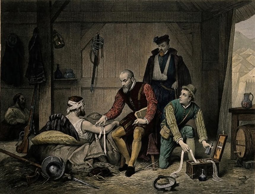 この画像を大きなサイズで見るアンブロワーズ・パレ(1510年 – 1590年12月20日)という人物がいた。彼は軍医としてフランス軍に従軍したのち、フランス王室の公式外科医となった。