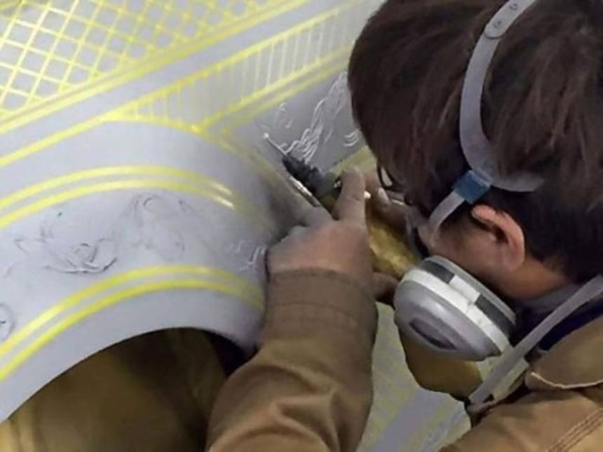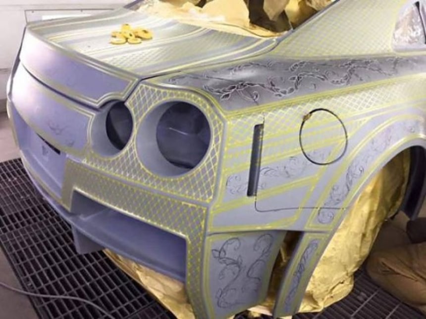 「ARTIS」と「KUHLRACING」がタッグを組んで作り上げたカスタマイズカーで、ボディにパテを塗り、マスキングをして丹念に作り上げられている。彫刻もすべて手作業というのだからまさに職人技だ。