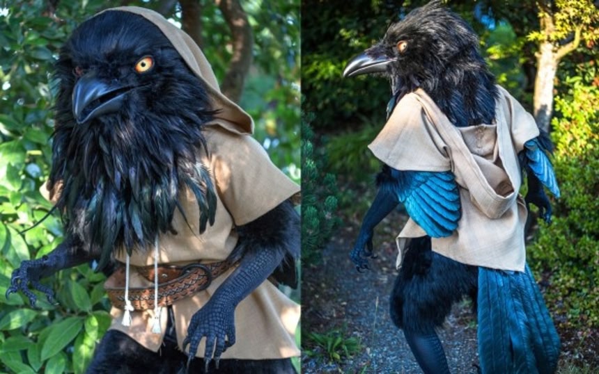 道ですれ違ったら、「ああ、カラス人間か」と疑うことなく信じ込んでしまいそうなほどクオリティの高いカラス人間の衣装。これはアメリカ、ワシントン州シアトルを拠点に活動しているイラストレーターであり、ビデオゲームアーティストのラー・バップがすべて手作業で作り上げたものである。