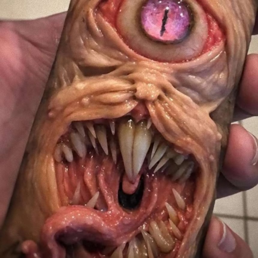 アメリカ、カンザス州に住む歯科技工士でありアーティストのモルガン・ミューテイションの作り出すスマホカバーの完成度は高い。簡単に言うと変異したミュータントクリーチャーなのだが、皴に刻まれたリアリティのある皮膚に埋め込まれた充血した目玉。そして特筆するべきなのはやはりその異形の過剰歯だろう。歯科技工士だけに歯のクオリティがすごいことになっている。