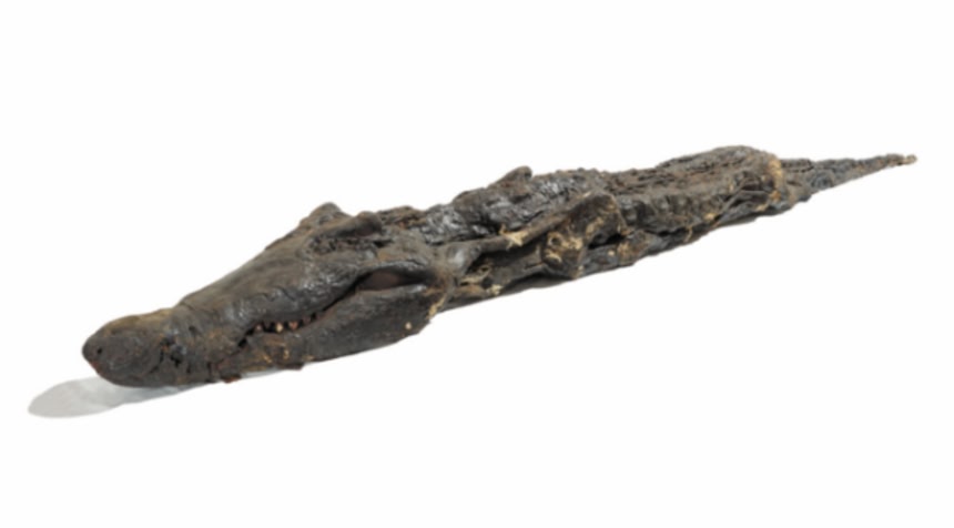 この画像を大きなサイズで見る大英博物館には、コム・オンボ神殿で発見されたナイルワニのミイラが保管されている。この神殿では、ソベック神の生きた化身としてワニが大切に飼育されていた。