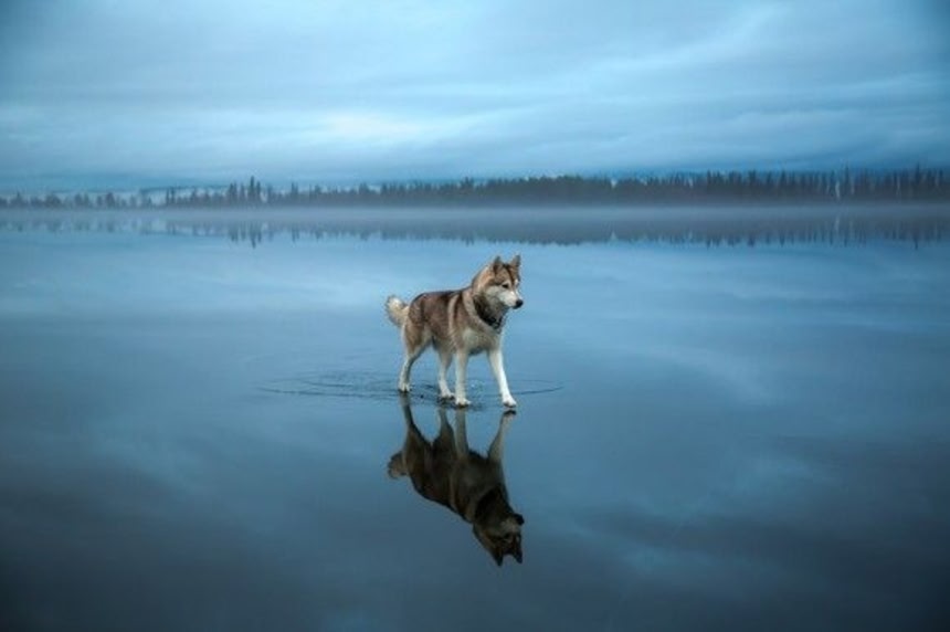 美しい水面を歩くハスキー犬の神々しい写真。これらはロシアの最北端にあるムルマンスク州キーフロスクに住む写真家、フォックス・グロムが撮影したものだ。