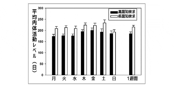 その結果に応じて、被験者を思考型と非思考型に分類。そのうえでアクティグラフ(体の動きを記録する装置)を身につけてもらい、1週間にわたり活動レベルを記録した。