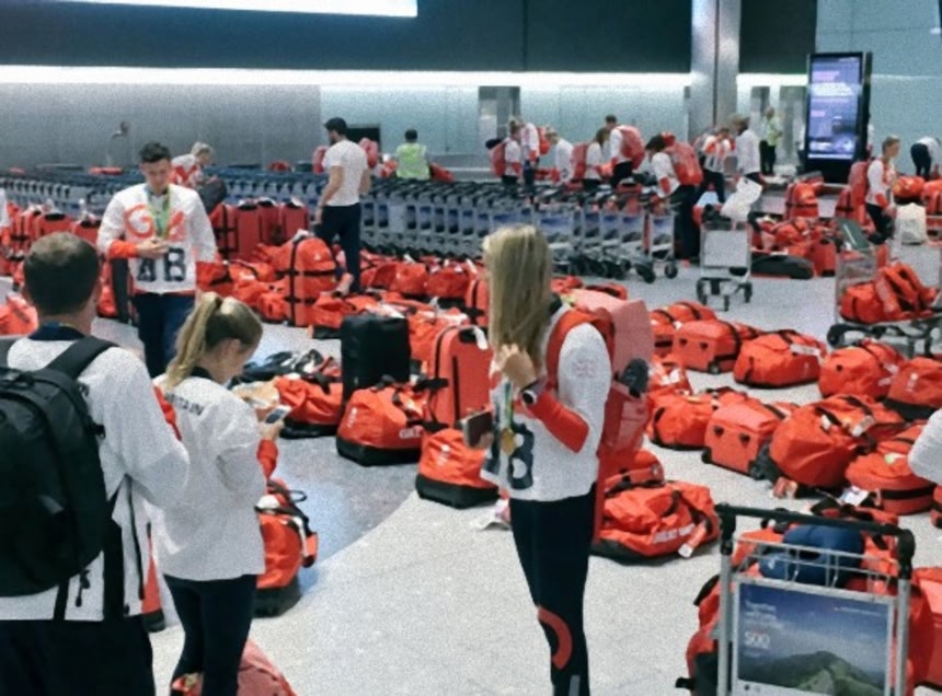 この画像を大きなサイズで見るイギリスの選手団がオリンピックに持参したバッグは指定されたバッグだったわけで、皆同じ色で同じ形をしている。赤バッグ大量発生と言わんばかりに同じバッグがコンベアに乗ってずんどこ運ばれてきたわけだ。