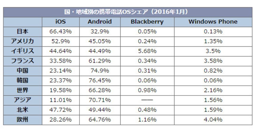 自分はBlackBerry使ってるが、日本は0.05%しかいないのか….orz
