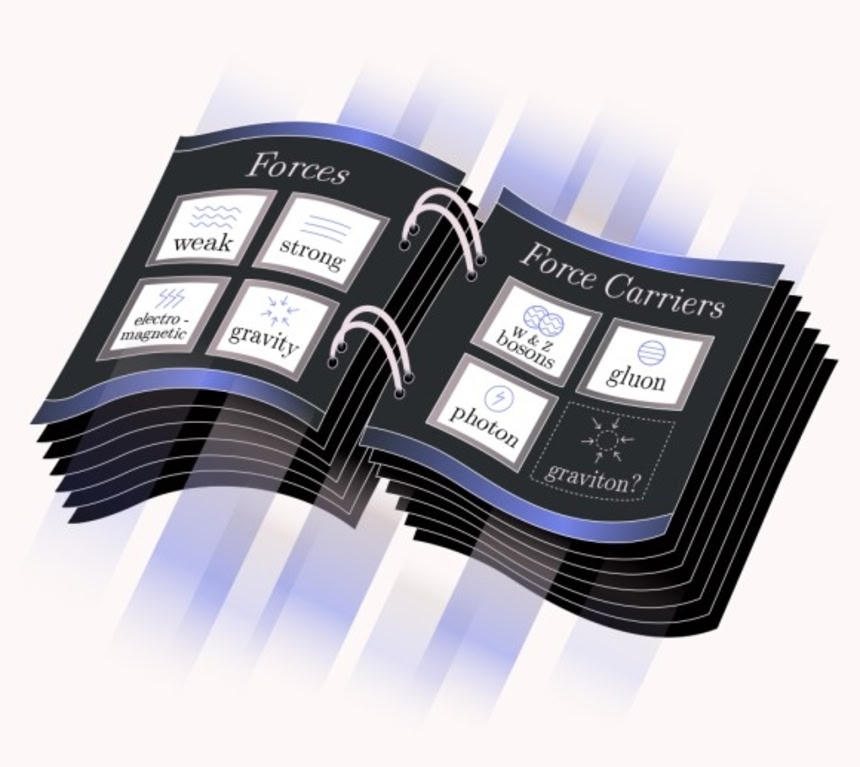 この画像を大きなサイズで見る標準モデルでは、粒子は力を運ぶ粒子を介して相互に作用していると説明する。例えば、光子は電磁力のフォースキャリアである。量子重力理論で仮定されている粒子は重力子だ。その動きについては一般相対性理論から多少の推測がされており、光子のように、重力子も質量がない可能性が高い。
