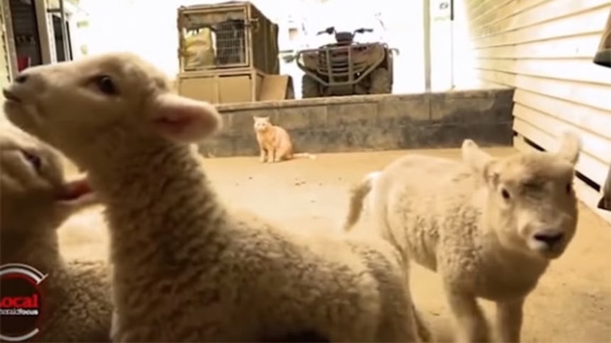 子羊たちの群れを率いている猫の飼い主、アマンダさんによると、スティーブは逆に自分が羊だと思っているフシがあり、しかも自分こそがリーダーであるべきだと考えているようにしか見えないという。