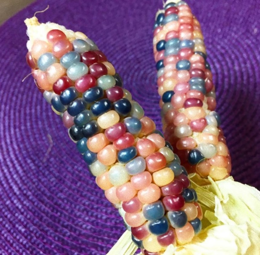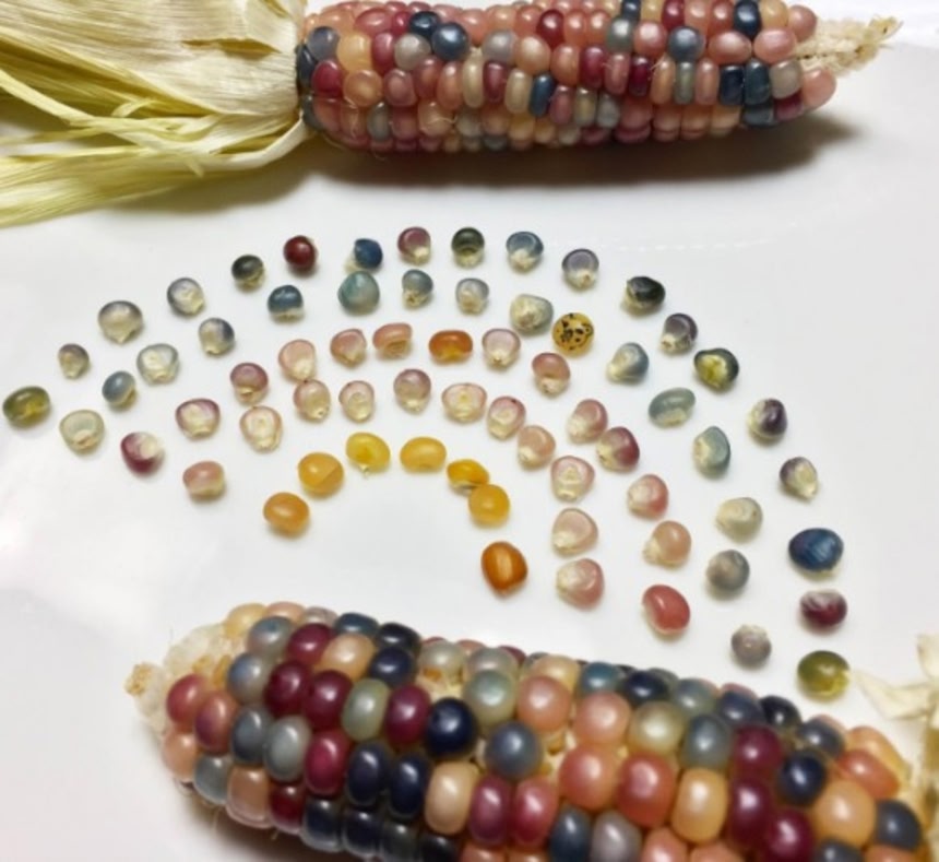 今年5月、七色に輝くトウモロコシ「グラスジェムコーン」を紹介させていただいたのだが、あの時、クマ姉さんにその種をヒョイっと送ってみたところ、なんとその種が実を結び、とてもうつくしいグラスジェムコーンが収穫できたので、今回はそのお披露目会とさせていただきたい。