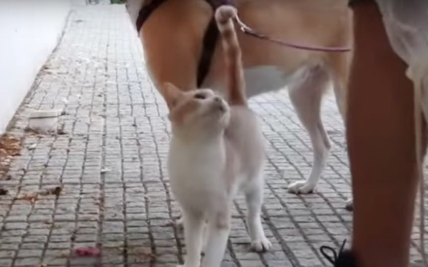 猫の尻尾を見ればこのわんこが心から歓迎されているのがまるわかりだねw