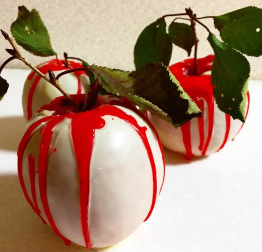 日本のリンゴ飴というと赤いべっこう飴みたいなのがコーティングされているのが一般的だが、時節はハロウィン。ここはどっきり要素をふんだんに取り入れた白雪姫気分のリンゴ飴を作ってみようじゃないか。