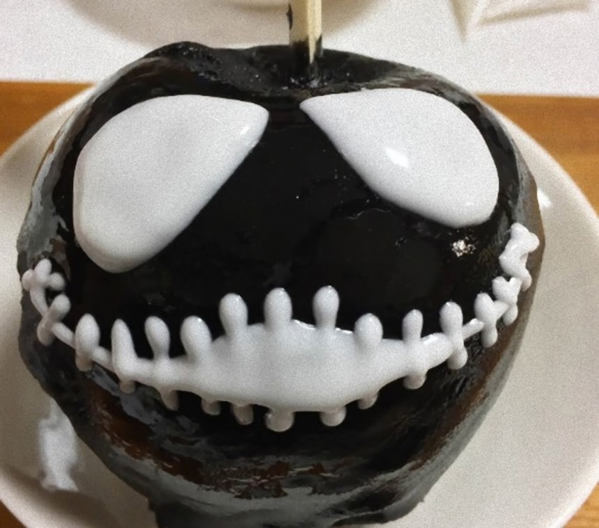 この画像を大きなサイズで見る味は日本のお祭りでよく売っているりんご飴と同じ。大好きな人は大好きなはずだ。私は大好きだ。だが、お祭りのりんご飴のりんごってちゃんと洗ってあるのかどうか心配だったりもするので、こうやって自宅で作れるのはいいね。黒色素の代わりに食紅を使えばお祭りのりんご飴と同りんご飴ができるよ。
