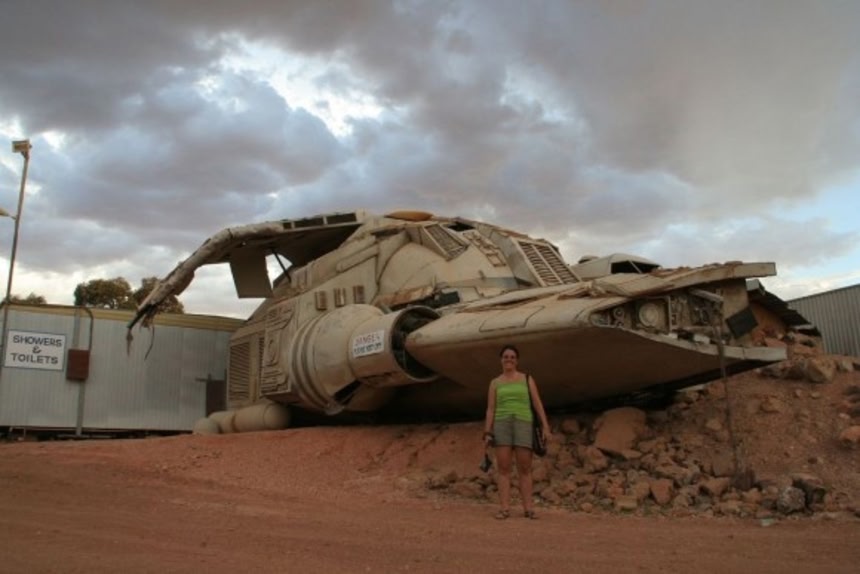 この画像を大きなサイズで見るその中でも墜落したピッチブラックの宇宙船はこの町で最も目を引くランドマークとなっている。なお、この大型セットは映画が終わった後は地元の店の所有物になり、一般公開されるようになったという。