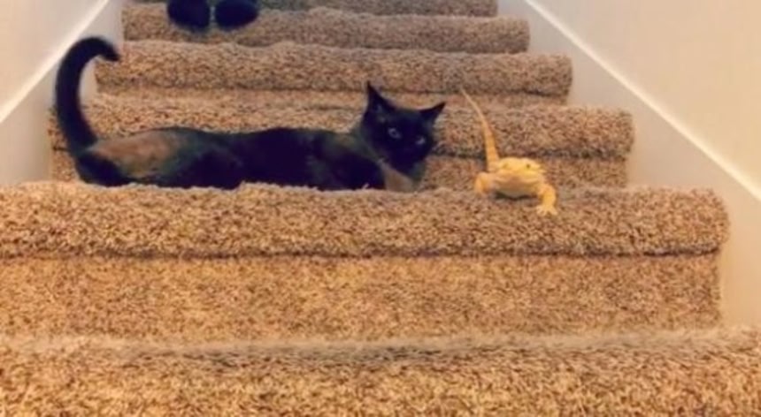 ネコとトカゲの組み合わせってよく見かけるけど相性いいのかな?