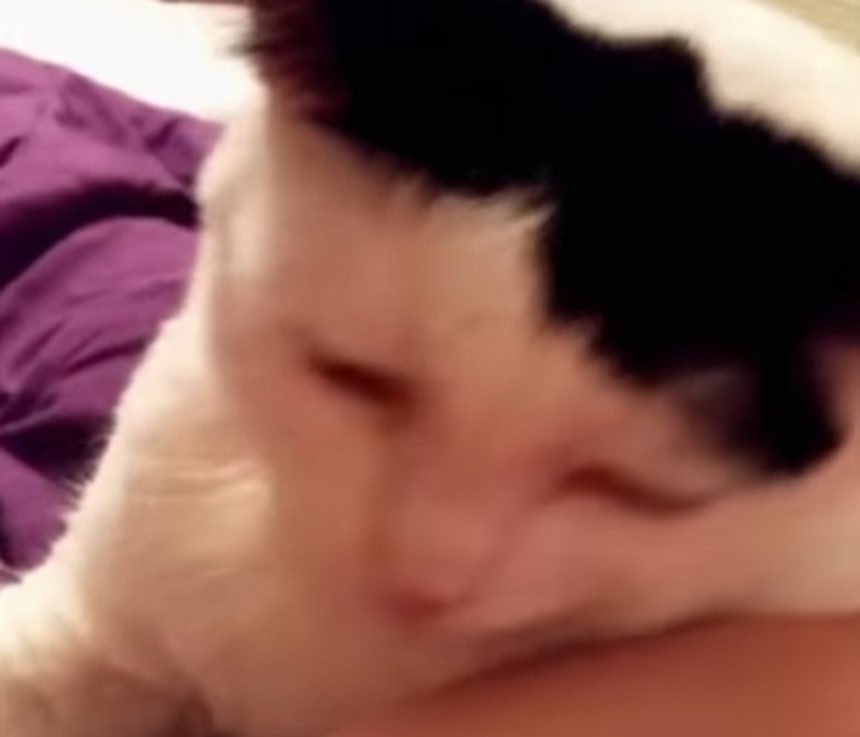 前にザイーガで見た猫動画ではご主人の足のニオイを嗅いだ猫が