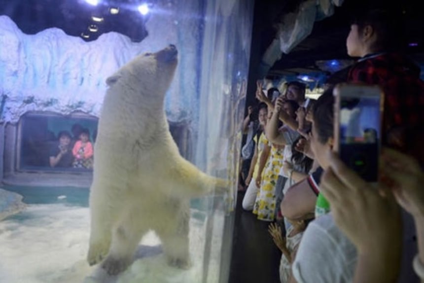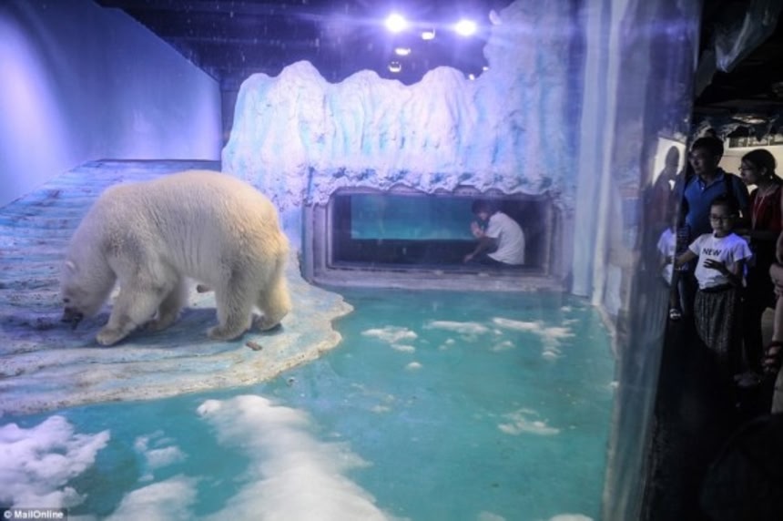 この画像を大きなサイズで見るネット上では世界一悲しそうなホッキョクグマとして話題となった中国のショッピングセンターにある水槽内に閉じ込められていたホッキョクグマが、生まれ故郷の海洋公園に戻されることになった。