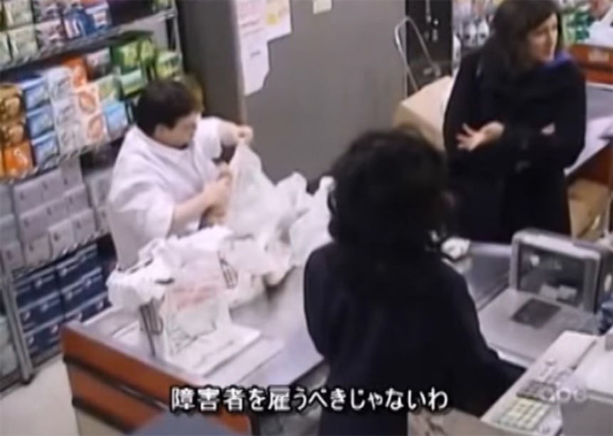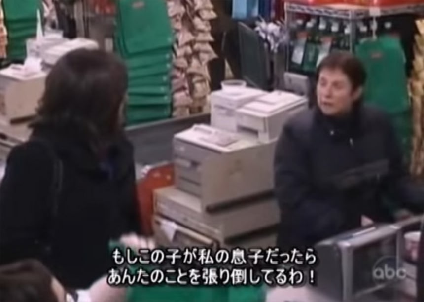 この画像を大きなサイズで見る彼女は養護学校の先生で、このスーパーにも元生徒ががんばって働いていたのだ。「教育や就職の機会は誰にでも平等にある。人生には誰にでも等しくチャンスがあるのよ!恥を知りなさい!」