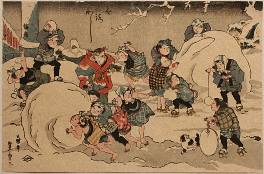 江戸時代も現代も雪が積もればやることは同じだな