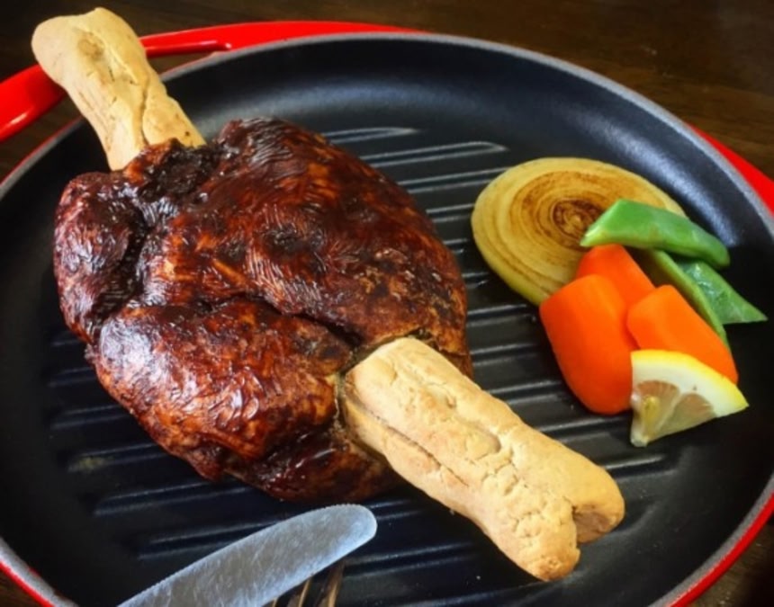 まだ切っていない方の焼豚にかぶりつきたい。ギャートルズのゴンのようにバクッと。