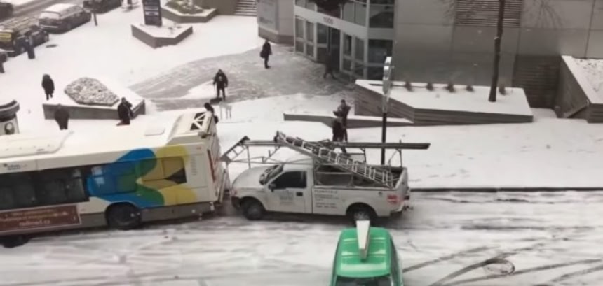 2016年12月5日の朝10:00頃、前の日に積もった雪が凍結してしまっていたカナダ、モントリオール、ビーバーホールの路上では、車が次々にトゥルントゥルンと滑って次々と玉突き事故。