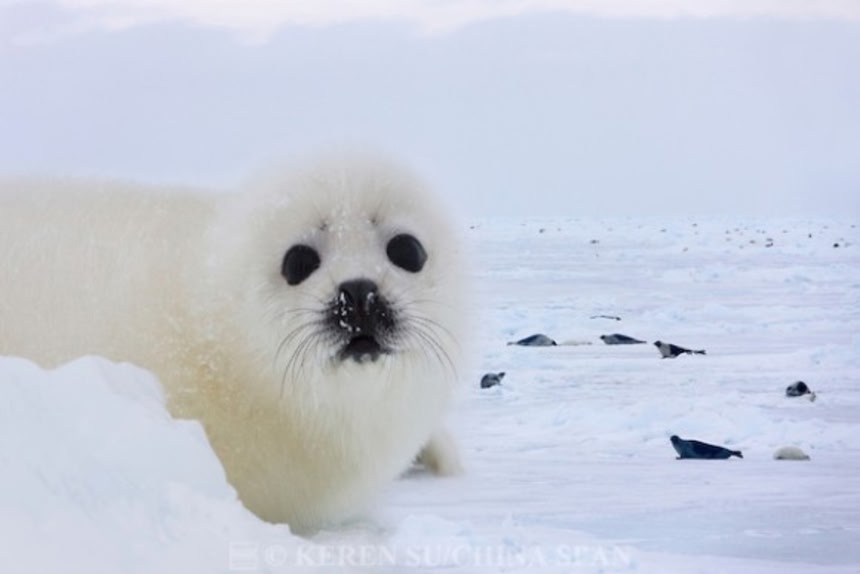 アザラシの出産の時期、生まれたばかりの赤ちゃんが、氷の上、あるいは陸の上でゴロゴロ、ヨチヨチしながら這い回っている。アザラシの子どもたちは生後2~3週間で乳離れをしなければならない。この時期、アザラシの赤ちゃんが一人ぼっちでさまよっている姿が多くみかけられる。