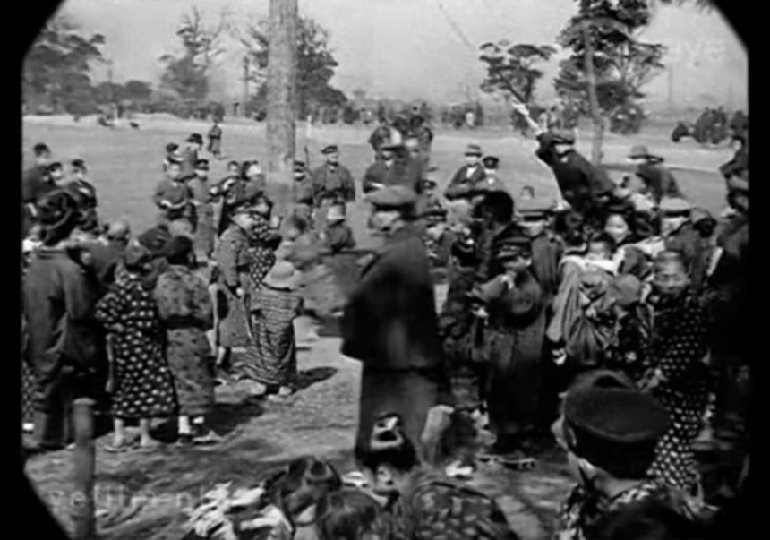 この映像は,人の動きが自然で,人の声が入っている。人の声は後から入れたものかもしれないが。大正時代の映像は映画以外では初めて見た。貴重な映像だ。