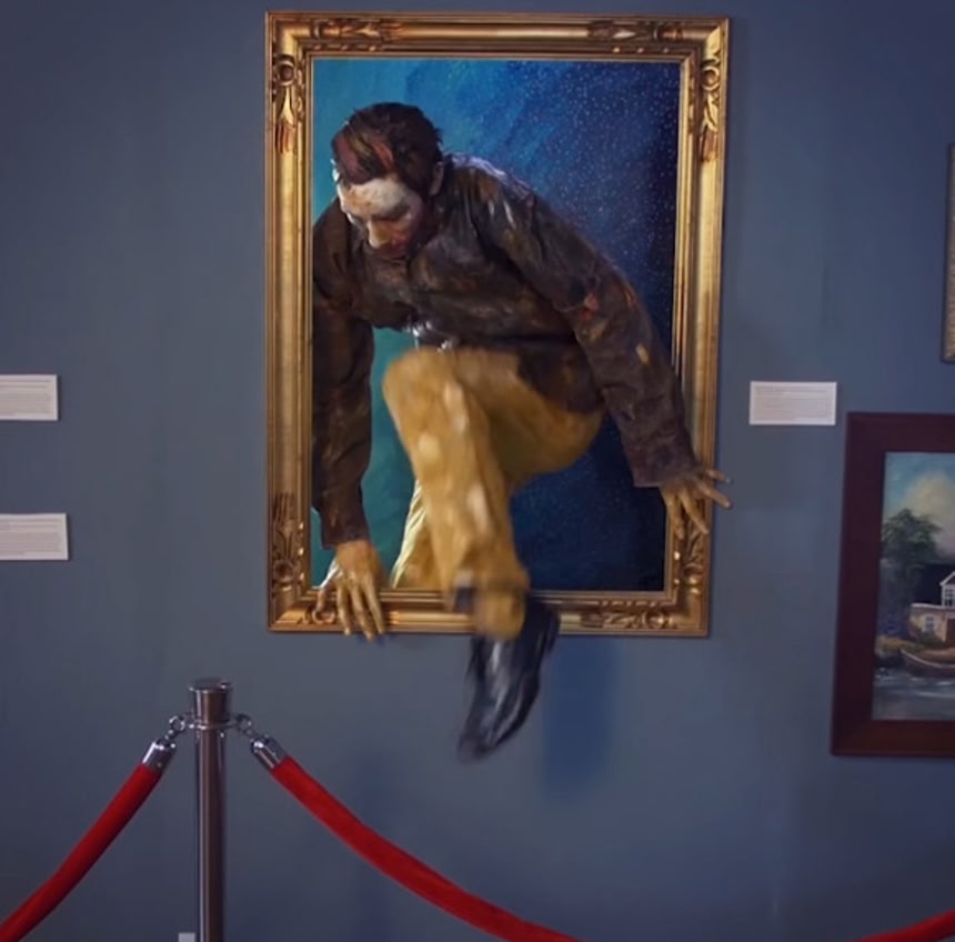 この画像を大きなサイズで見ると思いきや、人が途絶えると中の男性が突然いきなり額縁を乗り越え