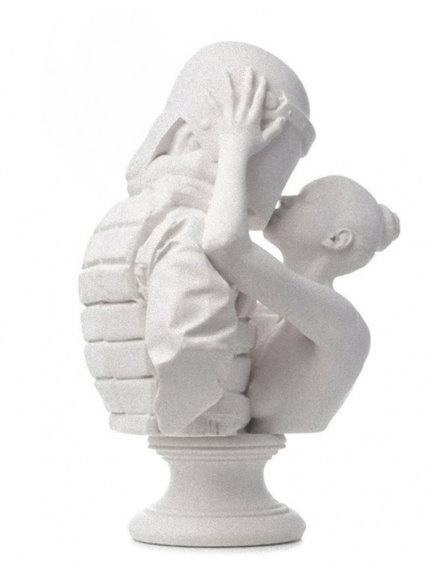 古典的な像をモチーフに現代社会を反映させるサットンの作品は、これまでの歴史的な芸術の概念に一石を投じるユニークな試みとして注目を集めているという。