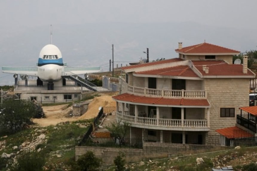 この画像を大きなサイズで見るレバノン北部Miziaraにある飛行機ハウス。この町にはほかにもギリシャの古代神殿やエジプトの遺跡を模した住宅が自慢の種となっている。この飛行機ハウスは、エアバスA380型機そっくりだ。