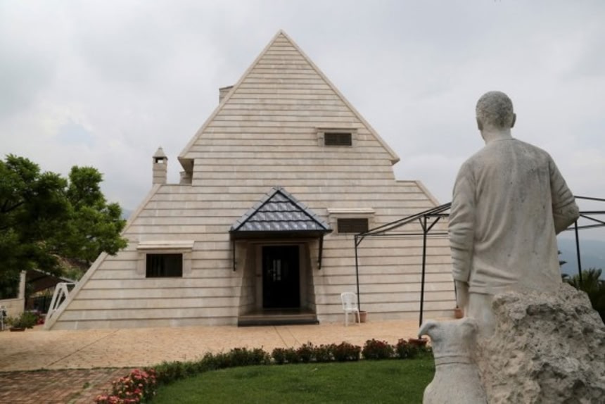 3.ピラミッドの家とそれを見つめる銅像 レバノン
