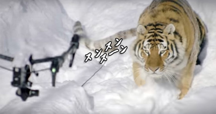 少なくともブタに真珠以上の価値はあったようだ。トラたちのいる雪原の上でドローンを飛ばしてみたときの映像だそうだ。
