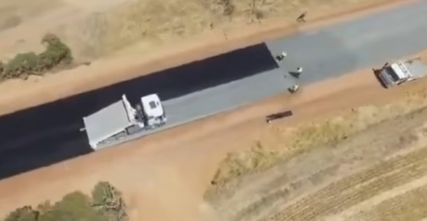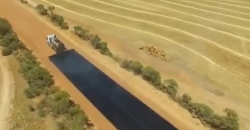 発行元はShire of Moora(の役所広報?)フェイスブックにある動画らしいですが「Airstrip Road」てなんでしょうね。もしや空港や滑走路近くにある「滑走路通り」的な名の道路なのでしょうか。地図で見るとMooraの西にある南北に伸びる道路にその名がありますが、ここをこんな工法で舗装しましたよ、てお知らせなのかな。
