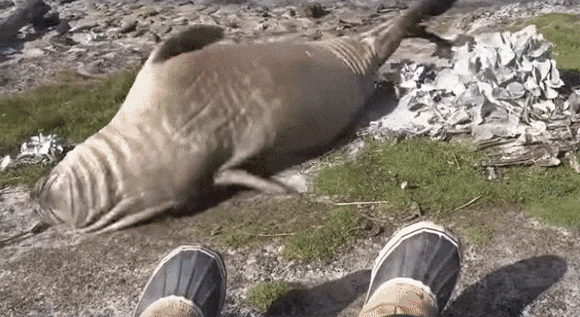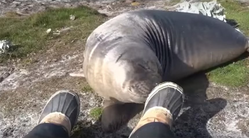 この画像を大きなサイズで見る人間の足のニオイはゾウアザラシにとってかなりの魔力を秘めていたようだ。