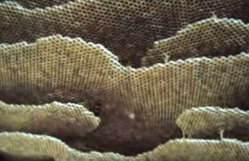 しかもこれ、家の中に作られちゃったというんだから驚きだ。いつも使っていない部屋だったのか、スズメバチの働きっぷりが音速レベルだったとか、いろんなことが想定されるが、折り重なった半球形の巨大な建造物。もうこれはアートだな。