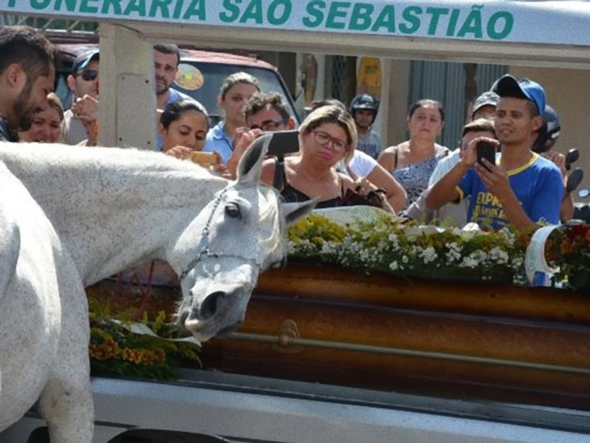 この画像を大きなサイズで見る2017年1月3日、ブラジルのリオグランデ・ド・ノルテ州で、ワーグナー・リマ・フィゲイレドさん(34歳)の葬儀が行われた。彼はセミプロのカウボーイとして10年にわたり愛馬とともにロデオで活躍していたが、1月1日に起きたバイク事故で帰らぬ人となった。