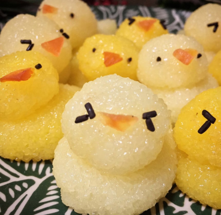 この画像を大きなサイズで見るプチプチの質感、食感がたまらない、おいしくてかわいいヒヨコ餅。