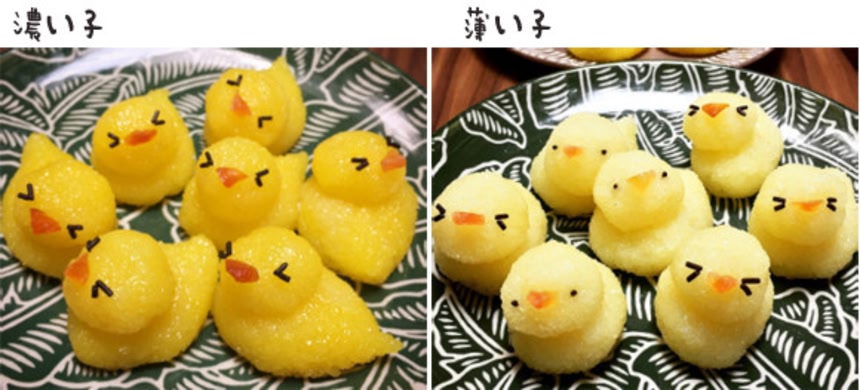 この画像を大きなサイズで見るかわいいヒヨコの大行進。実はこれ、桜餅の材料で作られている。