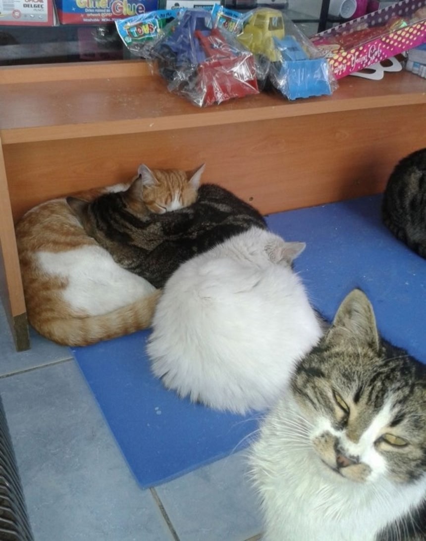 このぬこ達の顔見たらお客さんも心温まるだろうね