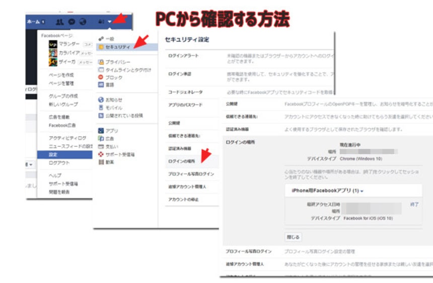 自分のフェイスブックのログイン情報を確認する方法:PC編