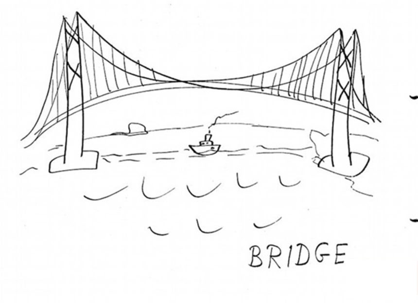 この画像を大きなサイズで見る局員が描いたサンフランシスコのゴールデンゲートブリッジの遠景