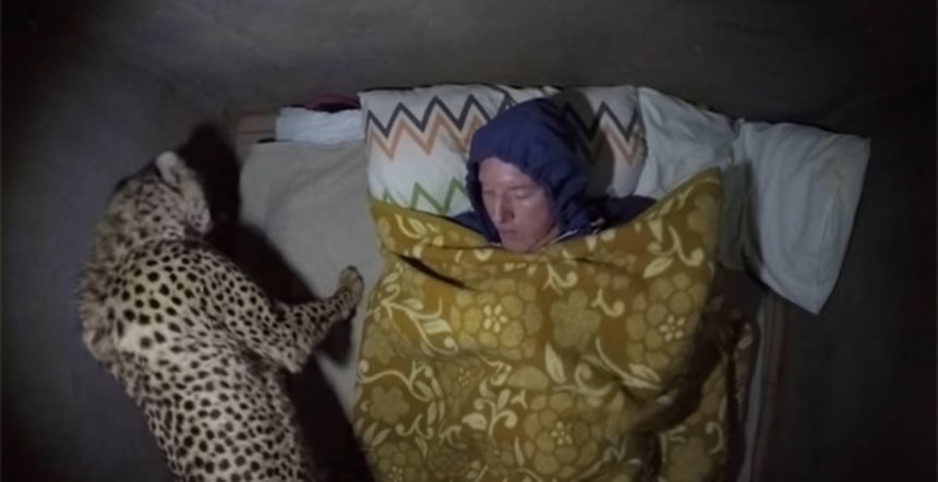 この画像を大きなサイズで見る南アフリカにある絶滅危惧動物の保護施設を訪れた動物学者が、あのチーター先輩を枕にして一夜を過ごしている動画が話題になっている。