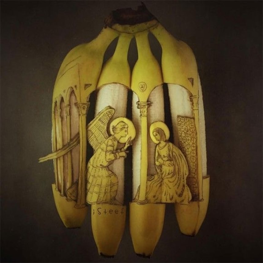 オランダのグラフィックデザイナー、ステファン・ブルースさんはそんなバナナを素材に、斬新なる構図のアート作品『FRUITDOODLE』を制作している。動物、ポップカルチャー、聖書のストーリーなどのモチーフを、飛び出す絵本のように、斬新な視点で面白く仕上げている。