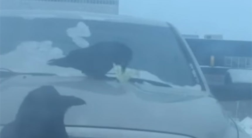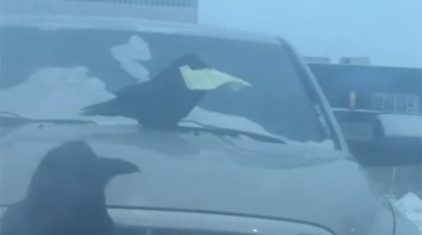 この画像を大きなサイズで見る2017年1月19日、カナダのイエローナイフにて、とある駐車場の車に留められていた駐車違反のチケットを無断で抜き出し、ビリビリにして食べてしまったというカラスが目撃された。目撃者は地元のカラス好きの女性で、現場でチケットを抜き取り犯行におよぼうとするカラスを録画したという。