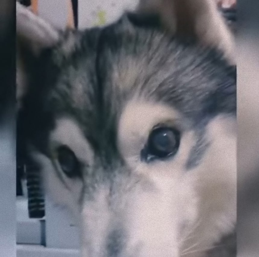 かわいいな~。飼い主さんにも本当に愛されてるんだろうね。後ろにたくさんハスキーのグッズがある。