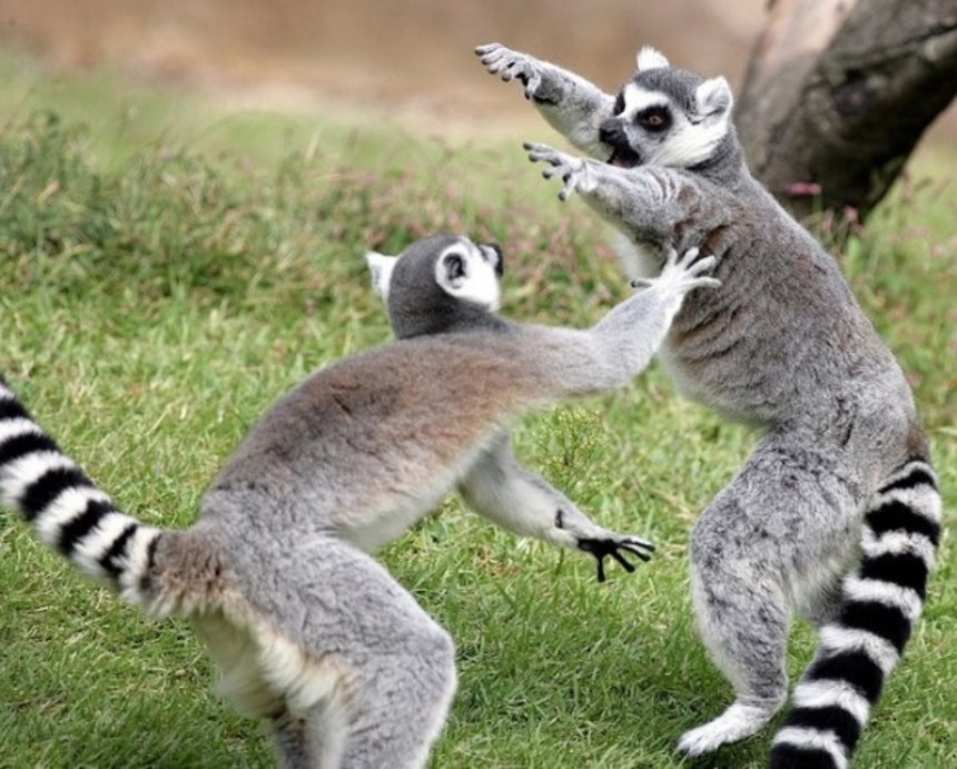 6. ワオキツネザルの世界では、くさい方が偉い(手首からくさい匂いが出る)。最もくさい者が集団のリーダーになる。