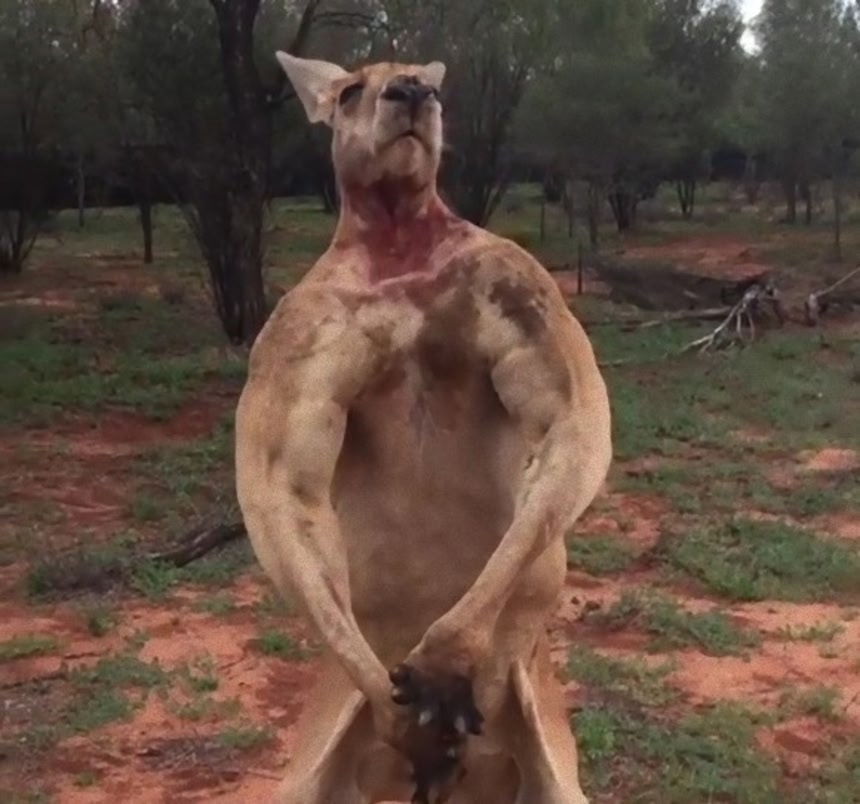 カンガルーに対して、マッチョメンが筋肉を見せつけるとどうなるんだろ?