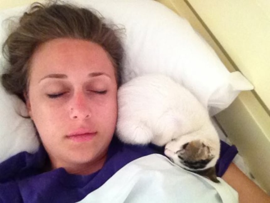 この画像を大きなサイズで見るそして昼寝を楽しむ女性。オーレリアさんはすぐ添い寝をしてくれた