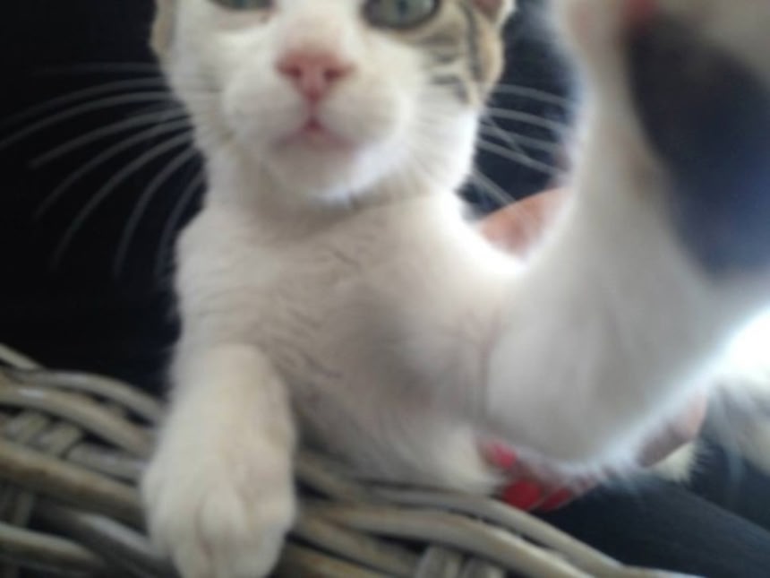 この画像を大きなサイズで見るネット上ではキュートな子猫の情報には事欠かないが、ギリシャのホテルで可愛い猫と添い寝しちゃった!しかも子猫!という女性の画像が話題となっている。その子の名はオーレリア。手のひらサイズのめんこい盛りである。