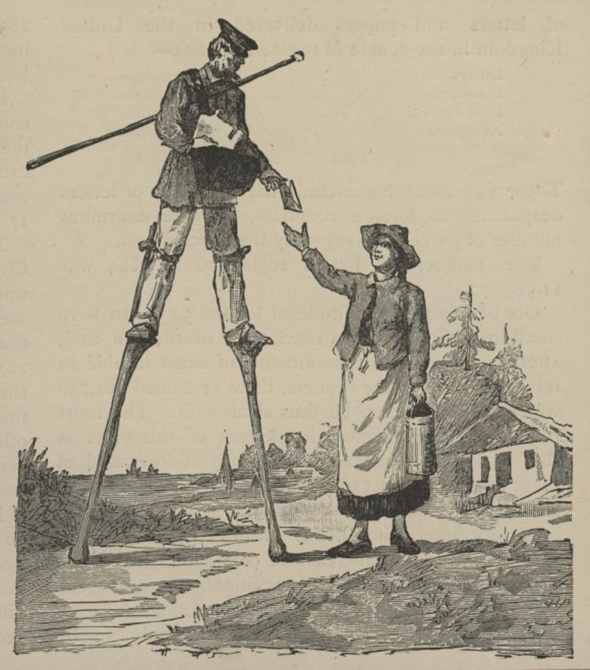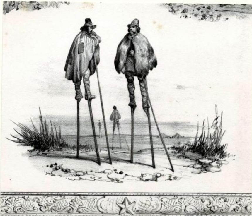 ランド県の羊飼い・・・自由自在に竹馬を操る並外れた技術を習得し、バランスを保つ方法を熟知している。彼らは大股で歩き、直立し、敏捷に駆けるだけでなく本物のアクロバットの大技をやってのける。地面から小石を拾い上げ、花を摘み、落下するように見せかけて素早く立ち直り、片足で走るのだ…(1891の9月26日発行の誌面より抜粋)
