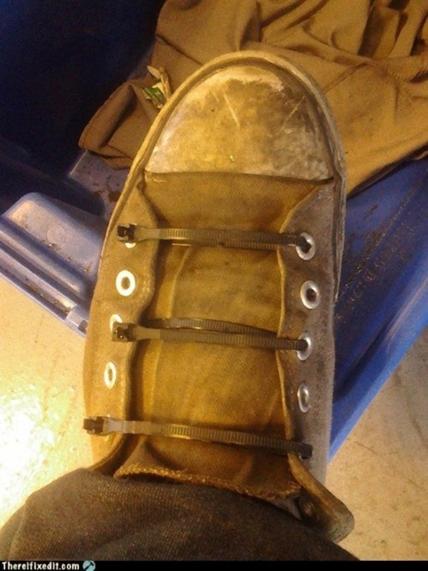 この画像を大きなサイズで見る14. 靴ひもがなくたって結束バンドがあればいい。