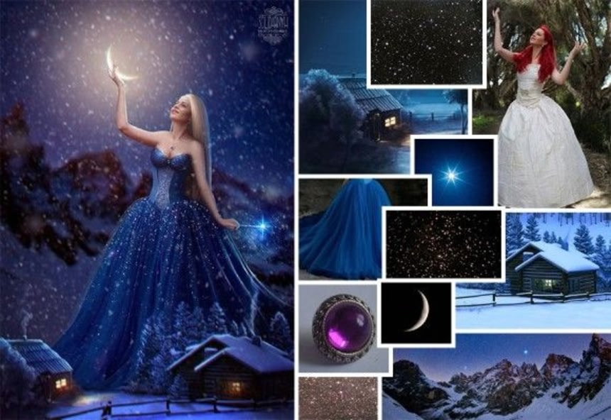 数枚、ときには数十枚の画像を重ね合わせ、神秘的なファンタジー性のある世界を作り上げている。また合成後のみでなく、使用したすべての画像を一緒に紹介しているのも興味深い。